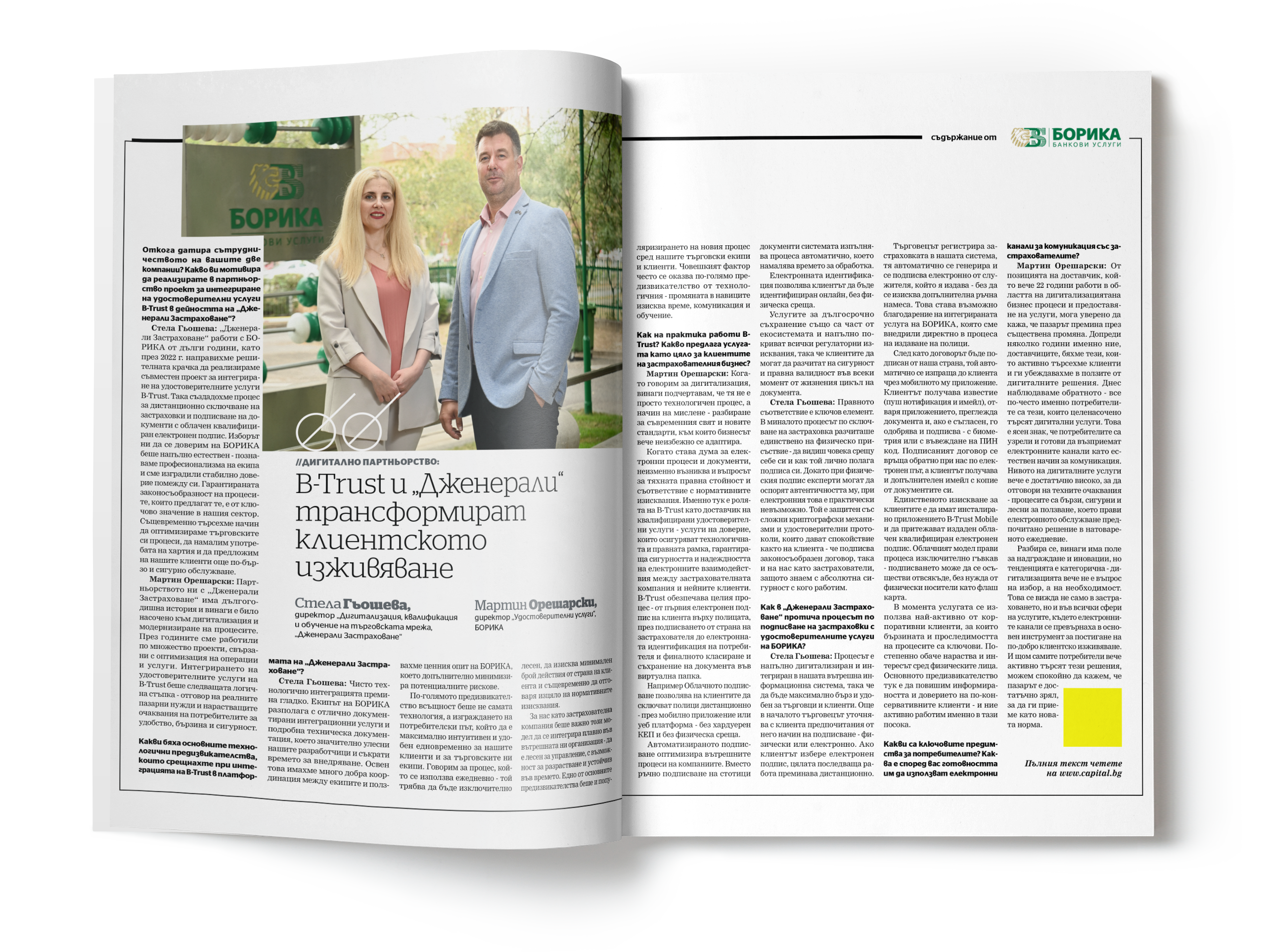 Пред в. КАПИТАЛ: B-Trust и „Дженерали“ трансформират клиентското изживяване